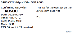 Let me know if you want an QSL card, as I don't mail them by default. I primarely send/receive cards direct however
