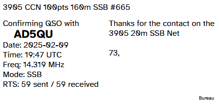 - For 3905 Century Club Net and OMISS QSLs I use my NetLogger Elf program to print the QSL cards straight